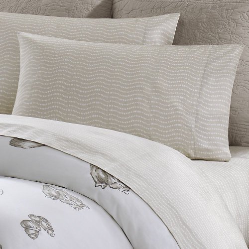 Harbor House Beach House takes soft Natural and Ivory colors and brings it to a spontaneous and charming ensemble for the bed. This ensemble of cotton features multi types of shells and whelks printing pattern in the comforter,shams and window while the pillows are embellished with dramatic coral motif embroidery and whelks printing. The cotton sateen sheets feature wave printing on the whole body that compliments the dramatic embroidered and printed pillows. The textures are sensuous; the embellishments are signature Harbor House; the colors are Natural and soft.